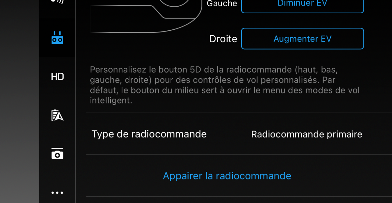 • Pour le mavic 2 pro, il permet d’appairer deux radiocommandes, vous devrez donc choisir s’il s’agit d’une radiocommande primaire ou d’une radiocommande secondaire